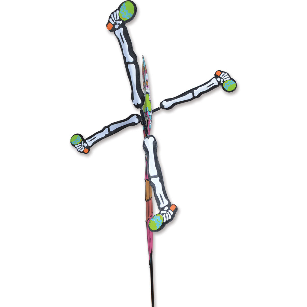 Premier's WhirliGigs capture all the fun of this traditional American wind decoration. Compared to metal or wooden devices, the durable SunTex fabric wings spin in lower breezes. A host of humorous themes will liven up any yard or garden. Large size, big movement and ease of assembly are the hallmarks of the Premier WhirliGig. Themed for Dia de los Muertos Mujer.